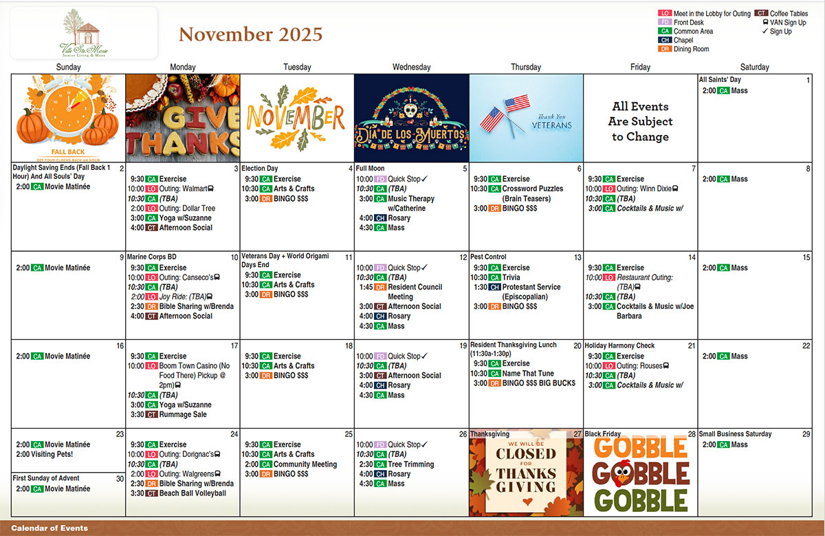 Ville Ste. Marie has a monthly calendar packed with fun activities, events, exercise classes, and outings! We also observe major holidays! Keeping things exciting over here in the South is what we do best. From crawfish boils to bingos, our residents always have a blast with each other. Our calendar changes monthly, so you can always be in the know of what happens next week! Our exciting activities are just one of the reasons we're among the best 55+ communities near New Orleans, LA. Contact us to schedule a tour today!